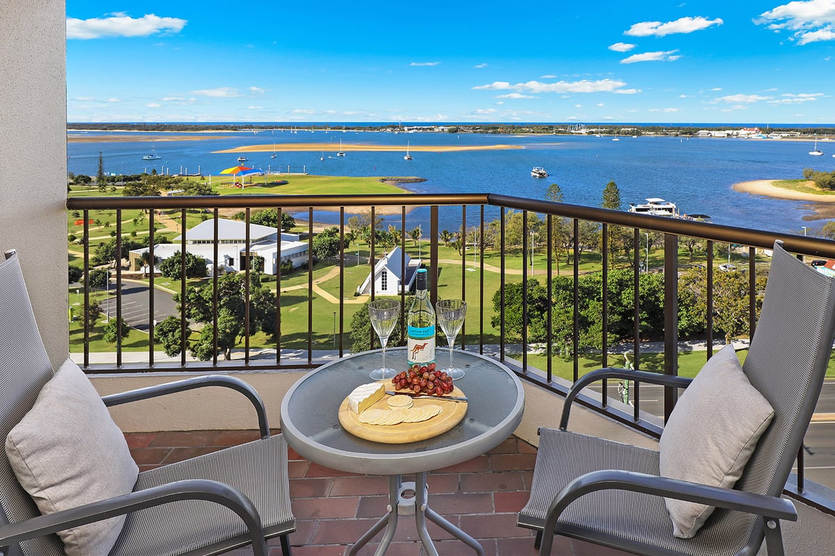 Situated on the Southport Broadwater, our fully equipped apartments are the perfect base for a relaxing holiday. Featuring 16 levels with all apartments facing the spectacular Broadwater with your own private balcony or terrace. The typical apartment features all the comforts of a home away from home. Fully self-contained with a full-sized kitchen, fitted out with all the necessary kitchenware, generous living spaces, two full sized bathrooms including internal laundry facilities, streaming services, free Wi-Fi and free undercover secure parking.